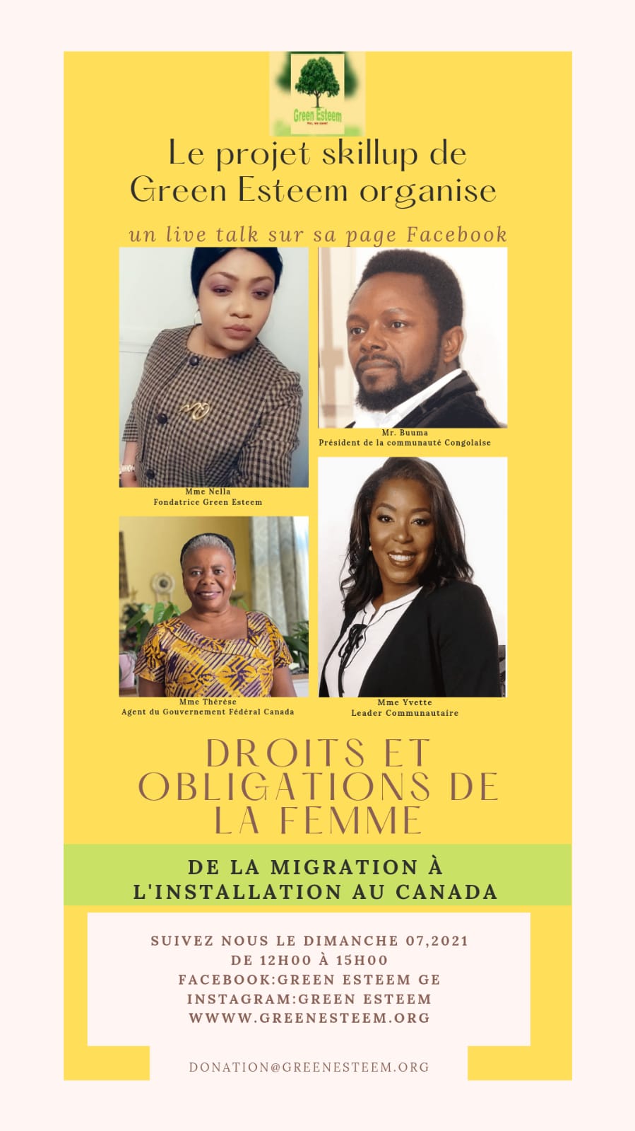 Green Esteem a réuni pour vous autour d’une table les représentants de la communauté congolaise à Ottawa/Gatineau et agent du gouvernement fédéral du Canada sur un sujet extrêmement important, « Les droits et obligations de la femme: de la migration à l’installation au Canada ».
